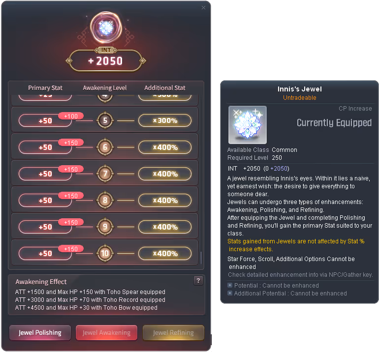Harness the power of the Jewel through 3 types of enhancements: Awakening, Polishing, and Refining.
