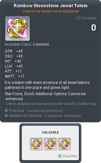Subsequent Brilliant glow, Rainbow Moonstone Jewel Totem quest is available through the NPC Maple Admin and can be repeated.